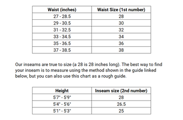 • This style runs small. Your size may differ from what you wear in other brands (or even other Abbreviated styles) - follow the size chart below. If you're between waist sizes, go with the larger one. Model is 5'8" wearing a 30x28.
